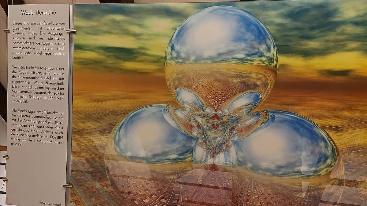 Die geometrischen Formen der Kristalle überraschen immer wieder. Was lag also näher, als die Ausstellung mit Arbeiten des Mathematischen Instituts in Oberwolfach zu ergänzen. Mit großen bunten Bildern wird hier versucht Mathematische Gesetzte anschaulich zu machen. Mein Eindruck war aber, dass man den tiefen Sinn des Ganzen erst nach einigen Semestern Mathematikstudiums begreifen wird. Einfacher zu verstehen sind Simulationen, die an großen Bildschirmen ablaufen, die man selbst verändern und steuern kann und sogar für Kinder geeignet sind. Das MiMa ist also auch ein Museum bei dem Aktivitäten nicht zu kurz kommen. Man muss aber etwas Zeit mitbringen.