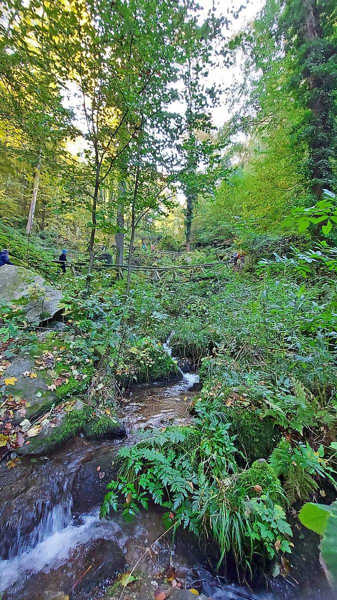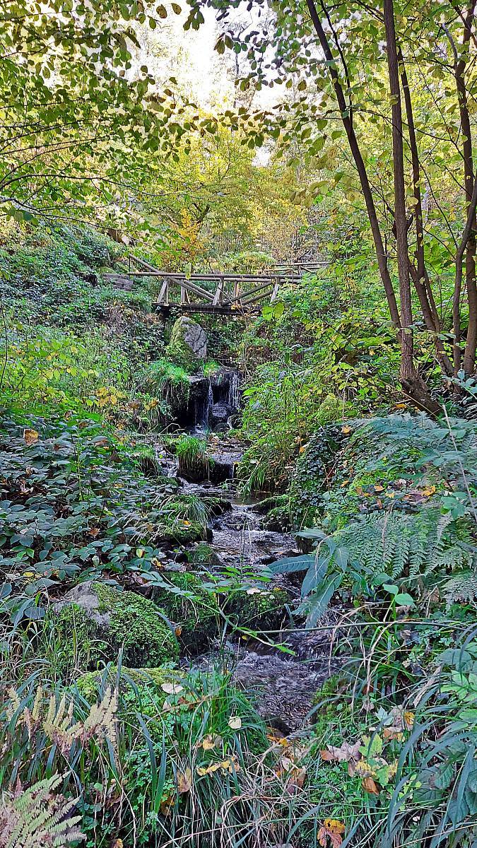Wenn man am Wanderparkplatz bei der Gaishölle startet, so hat man zunächst einen langen Anstieg durch ein steiles und romantisches Tal mit vielen Brücken vor sich, in dem man einen Wasserfall, bei dem das Wasser über viele Höhenmeter frei fällt vergeblich sucht. Danach wird der Weg freier und beim Spinnerhof, bzw. der Kapelle St. Katharina hat man einen schönen Blick Richtung Rheintal. Kurze Zeit später ist auch schon der höchste Punkt der Wanderung erreicht.
