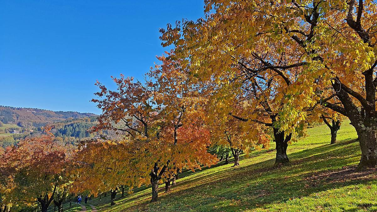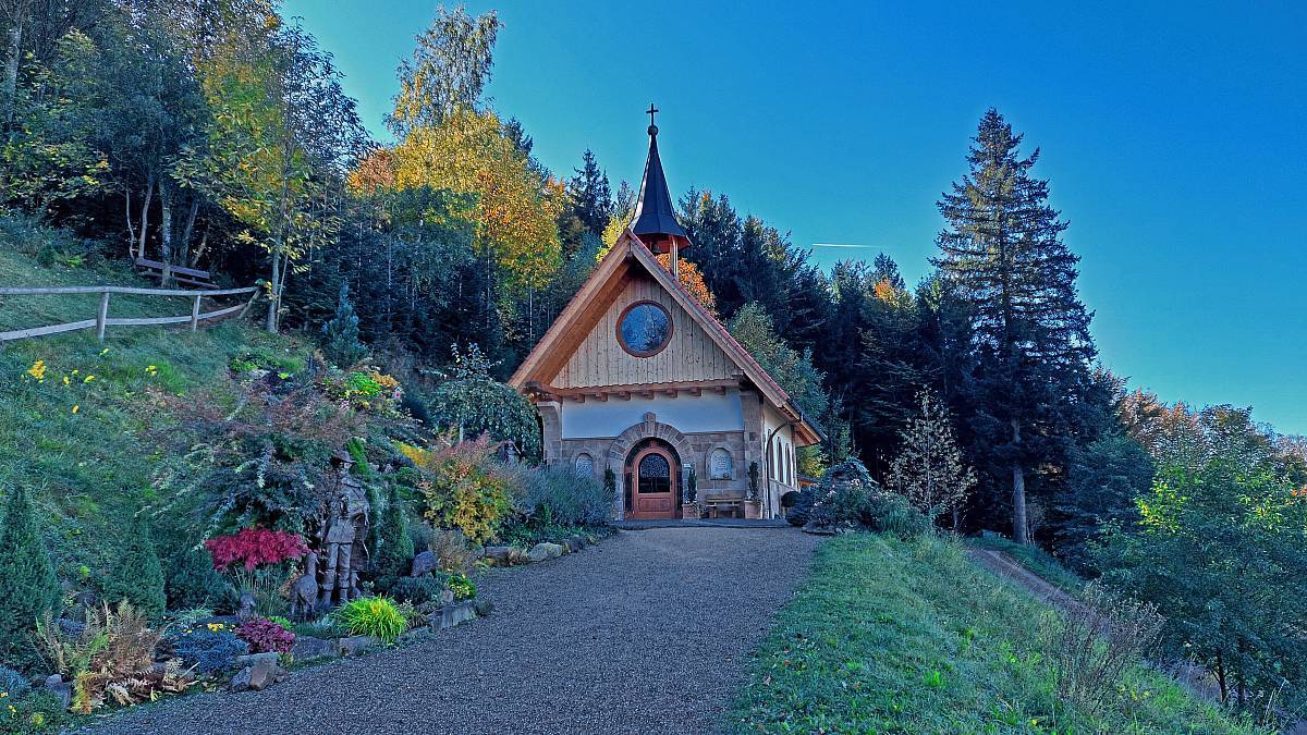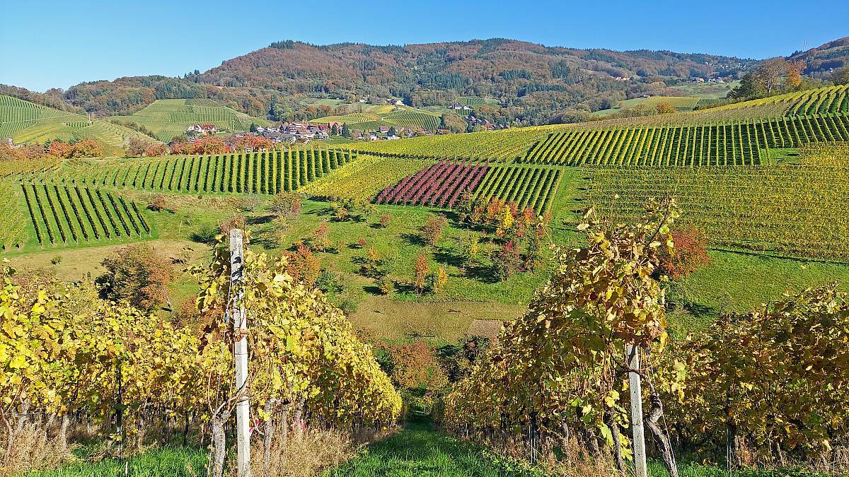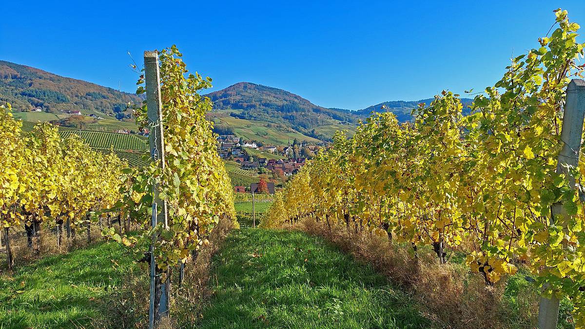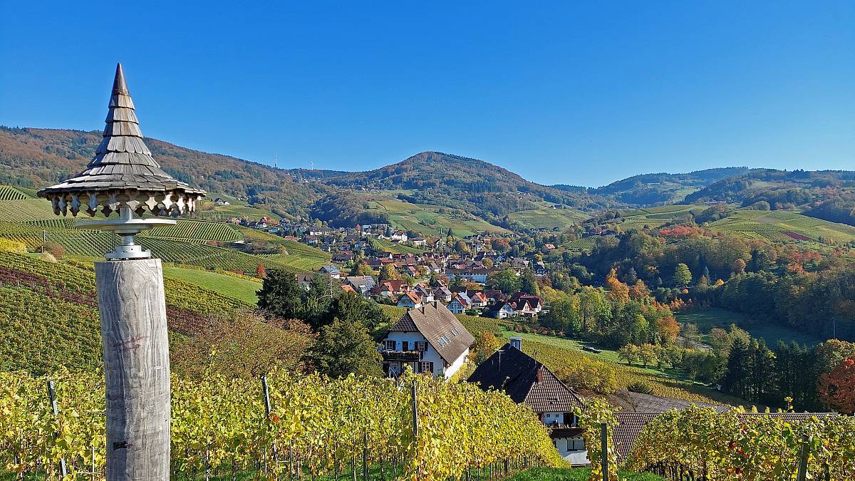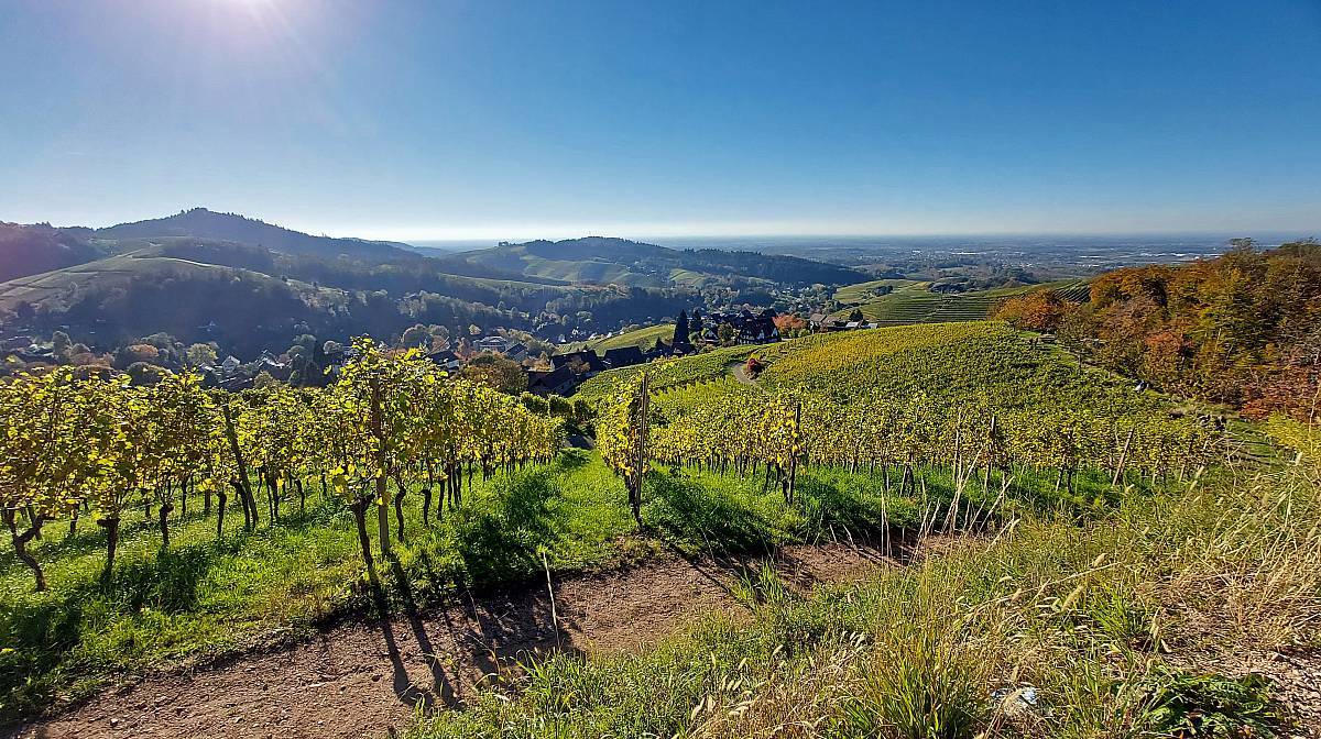 Die Alde Gott Panorama-Runde in Sasbachwalden gehört zu den traditionellen Genießerpfaden und ist entsprechend gut ausgeschildert. Die Strecke führt einmal um das gemütliche Weindorf Sasbachwalden herum, hat aber zwei Gesichter: Bei den Gaishöllwasserfällen fühlt man sich beinahe wie in einer Schlucht mitten im Schwarzwald, doch danach wandert man durch Weinberge mit Blick ins Rheintal, was gerade im Herbst mit der Laubfärbung besonders reizvoll ist.