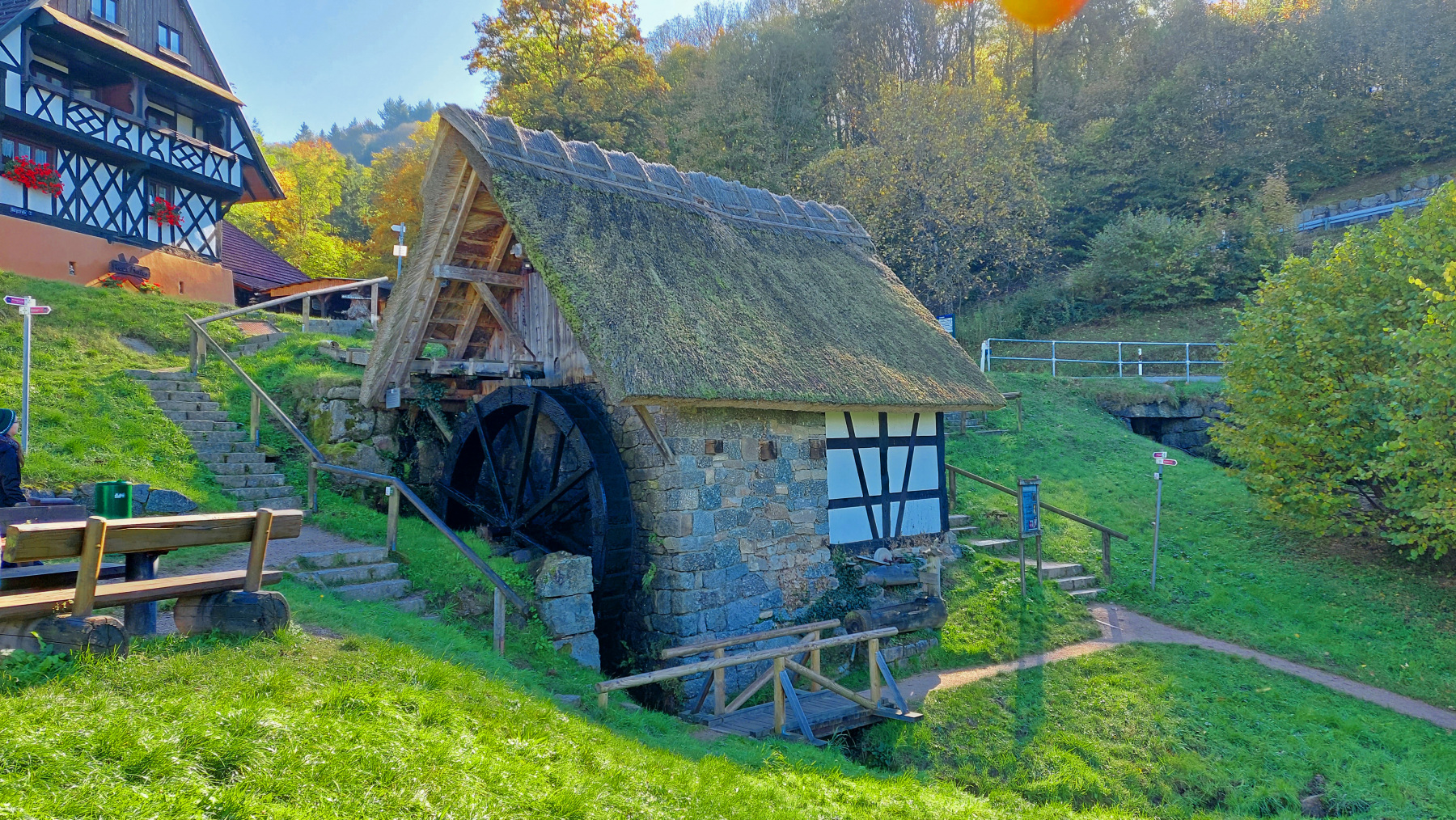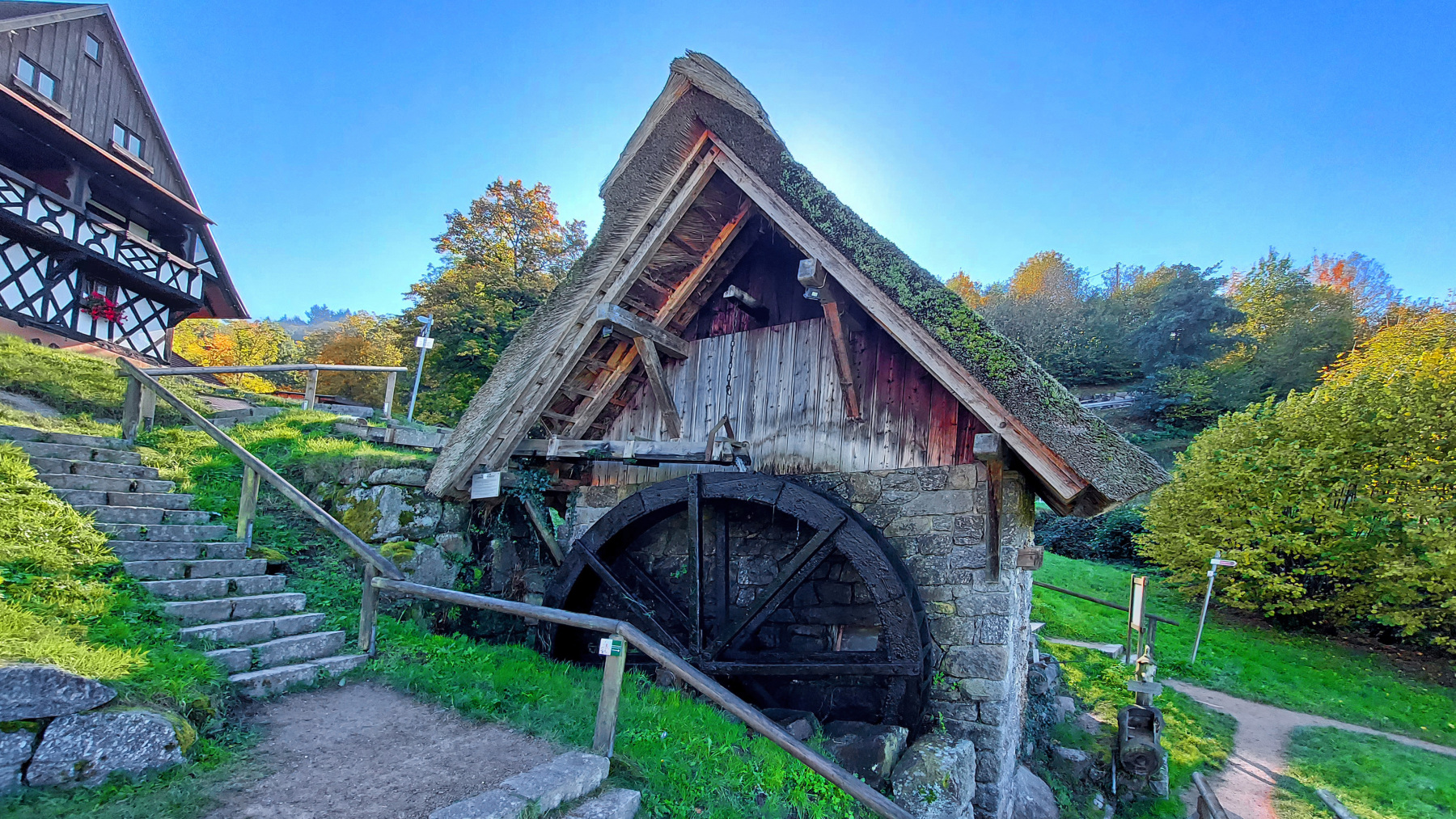 Danach gelangt man zur Straubenhof-Mühle. Einer originalen Schwarzwälder Hofmühle mit reegedecktem Dach, die vom dortigen Bauern Andreas Straub 1789 erbaut wurde und dank mehrmaliger Restaurationen heute noch in Betieb ist. Dank mehrerer Sitzgelegenheiten ein schönes Plätzchen zum Verweilen.