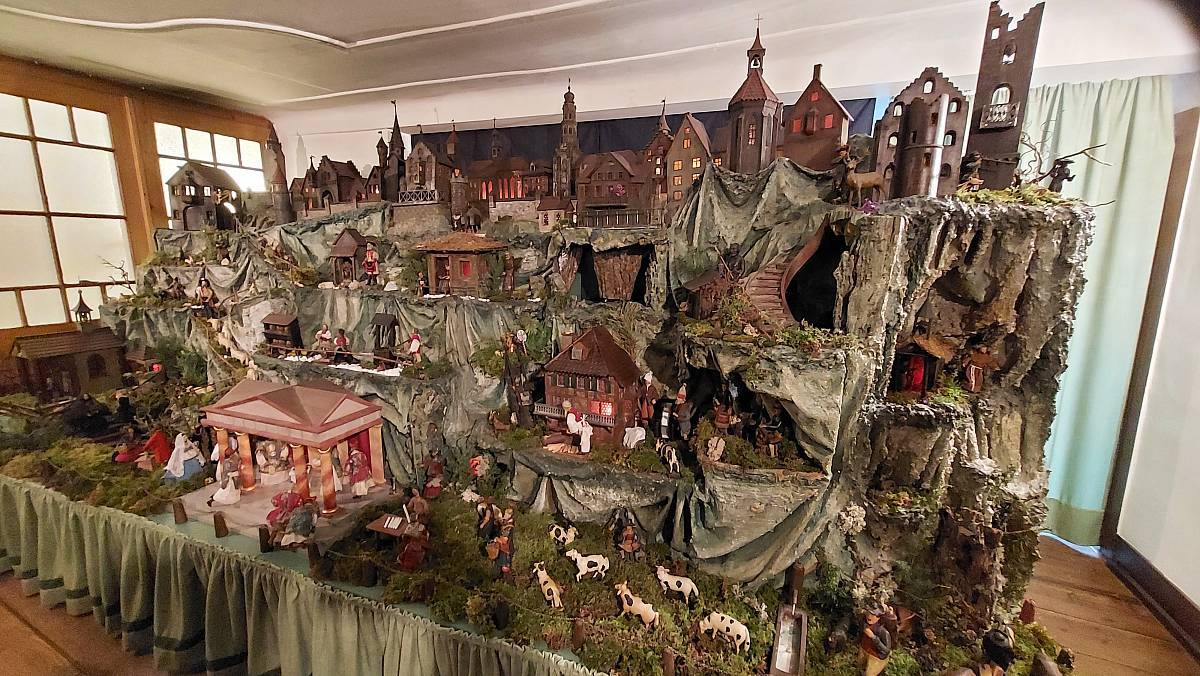 Im Stadtmuseum von Rottweil ist eine ganz besondere Grippe aus der Barockzeit zu sehen. Vor der Silhouette von Rottweil sind einzelne Szenen dargestellt, die während der Vorführung „lebig g’macht werre“, sprich sie werden von Kindern hinter der Kulisse bewegt. Das Spiel dauert ca. eine halbe Stunde und folgt im Wesentlichen der historischen Vorlage. Das Publikum darf gerne mitsingen, z. B. beim Jäger aus Kurpfalz und anderen weniger bekannten Liedern, die angestimmt werden. Die Weihnachtsgeschichte kommt dabei etwas zu kurz, aber das Jesuskind in der Krippe wird ja auch nur an einem oder zwei Sonntagen gezeigt. Danach wird die Szene umgebaut und an Epiphanias kommen die der Könige aus dem Morgenland usw. Die Krippe wird an den Sonntagen zwischen dem zweiten Weihnachtsfeiertag und Lichtmess (2. Februar) bespielt. Dann ist das Stadtmuseum für den normalen Besucherverkehr geschlossen. Karten können über das Dominikanermuseum organisiert werden (Stand 01.2026).