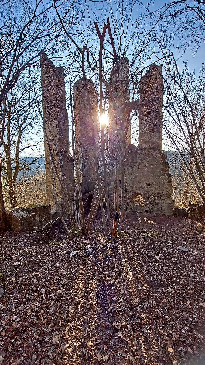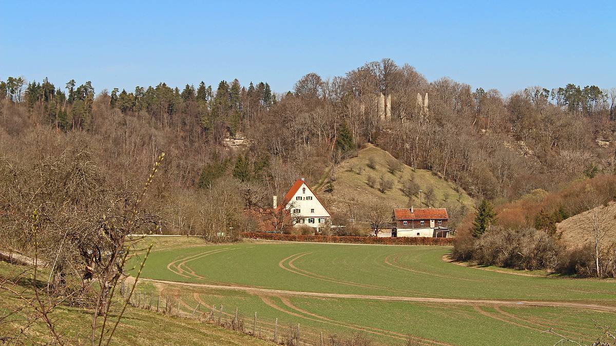 Die Neckarburg steht sei über 1300 Jahren auf einem Umlaufberg landschaftlich reizvoll in einer Neckarschleife nahe Rottweil. Obwohl sie ein beliebtes Ausflugsziel ist hat sich hier eine ganz besondere Vegetation erhalten, die unter Naturschutz gestellt wurde. Man hat den Eindruck, dass sie sich in den Sommermonaten hinter den Blättern der sie umgebenden Laubbäume etwas versteckt. Wenn man sie wie ich im zeitigen Frühjahr besucht, kann man die Überreste der Ruine besser in Augenschein nehmen.