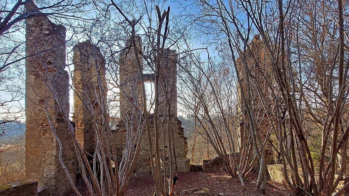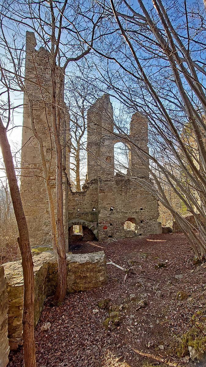 Wenige Schritte hinter der Burgruine steht seit 1275 eine Kapelle, die heue meist verschlossen ist. Sie gehörte zu einem abgegangenen Weiler unterhalb der Burg. Um 1700 gehörte Burg und Kapelle zum Kloster St. Georgen und wurde von Grund auf erneuert. In dieser Zeit wurde auch der Gutshof errichtet. Dort finden wir die die Jahreszahl 1711 über der Tür eingemeißelt. Im Sommer ist der Biergarten beim Gutshof sehr beliebt.