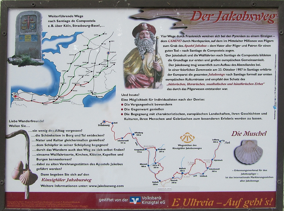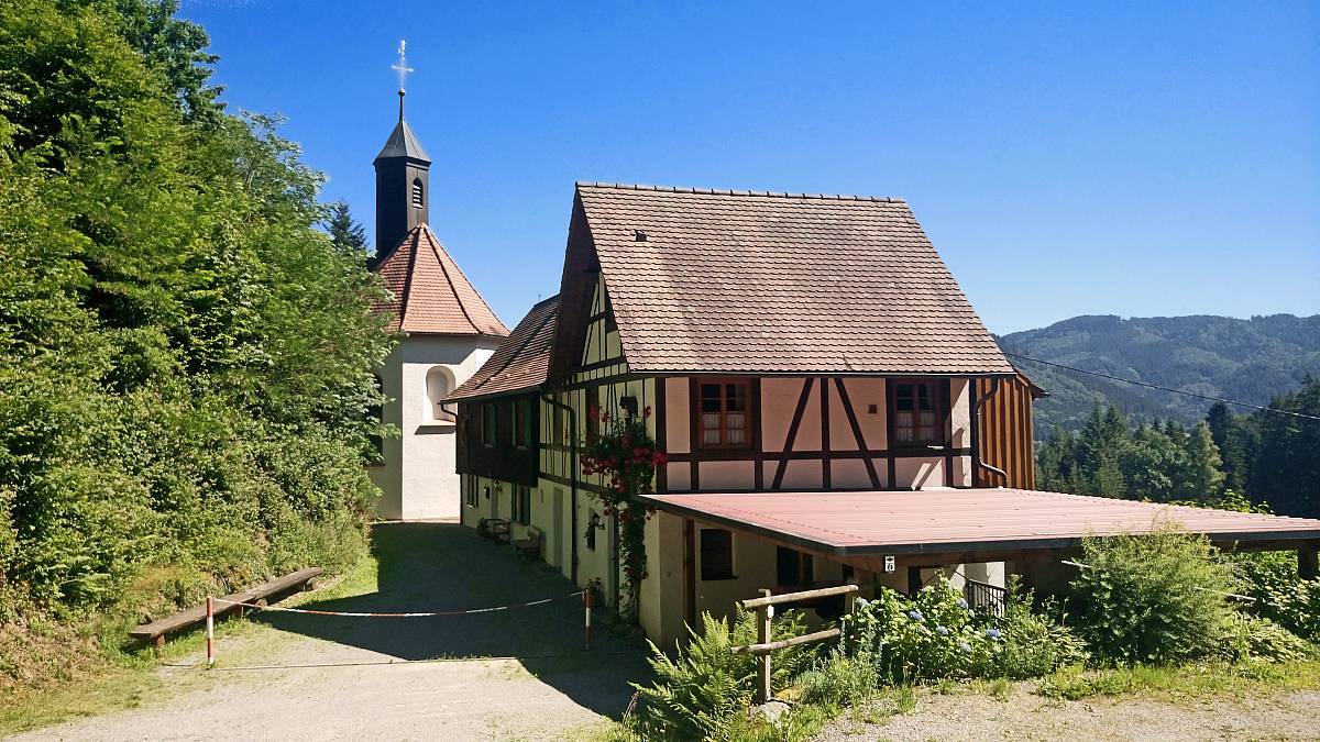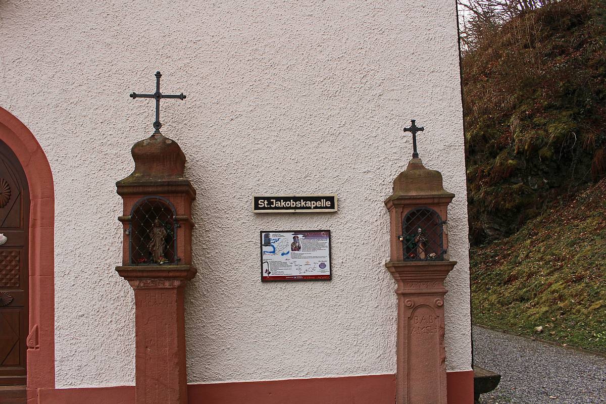 Die St. Jakob Kapelle ist ein besonderes Kleinod am kinzigtäler Jakobusweg. Ihre Ursprünge sollen bis weit ins Mittelalter zurückgehen und vielleicht stand hier schon ein Heiligtum, als die unweit gelegene Römerstraße noch befahren war. Es gilt als sicher, dass 1433 bereits ein Vorgängerbau existierte, den ein „frommer Bruder namens Conrad von Kalb“ errichtet hat. Später wird die Kapelle mit der Wolfacher Bruderschaft zum heiligen Jakobus in Verbindung gebracht. Aktuell wir die Kapelle von einem Eremiten, Bruder Otto, betreut.