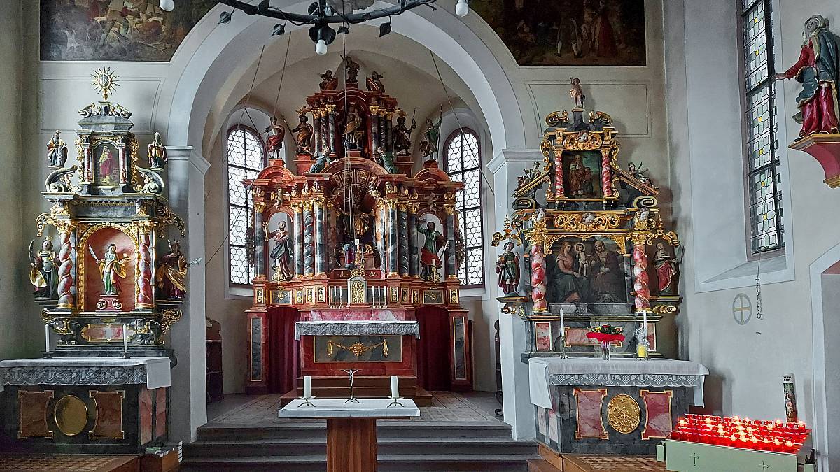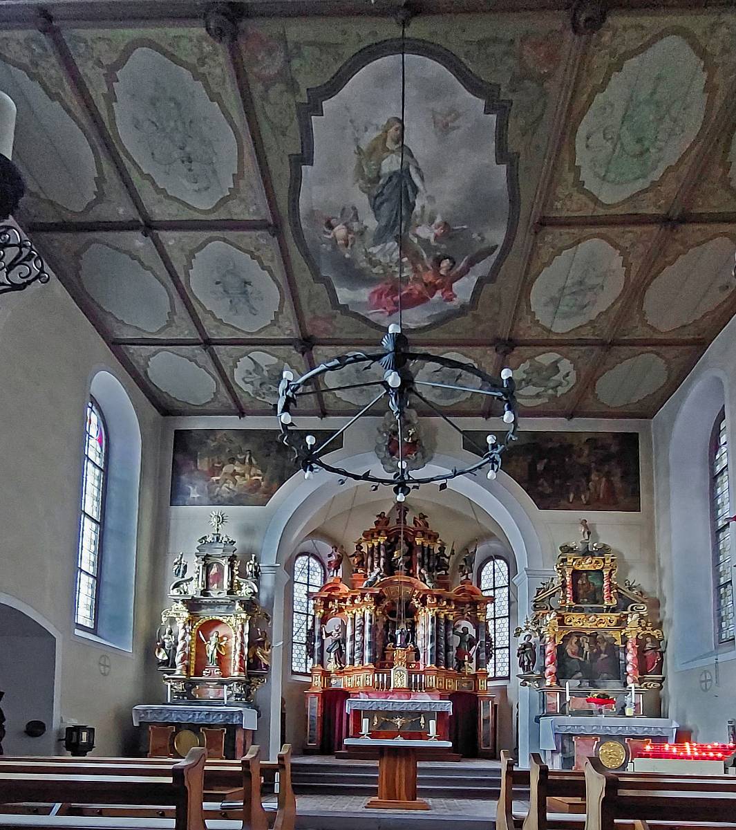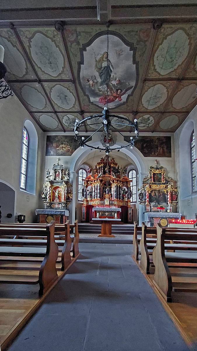 Innen betritt man einen prächtigen hellen Raum mit einer Holz-Kassettendecke, die vom einheimischen Künstler Konrad Schmieder (1859–1898) bemalt wurde. Ende des 17. und Anfang des 18. Jahrhunderts erhielt die Jakobuskapelle ihre barocke Ausstattung. Die Altäre wurden von der in Villingen ansässigen Bildhauersippe Schupp geschaffen und zeigen eine Verwandtschaft zur Wallfahrtskirche in Triberg.