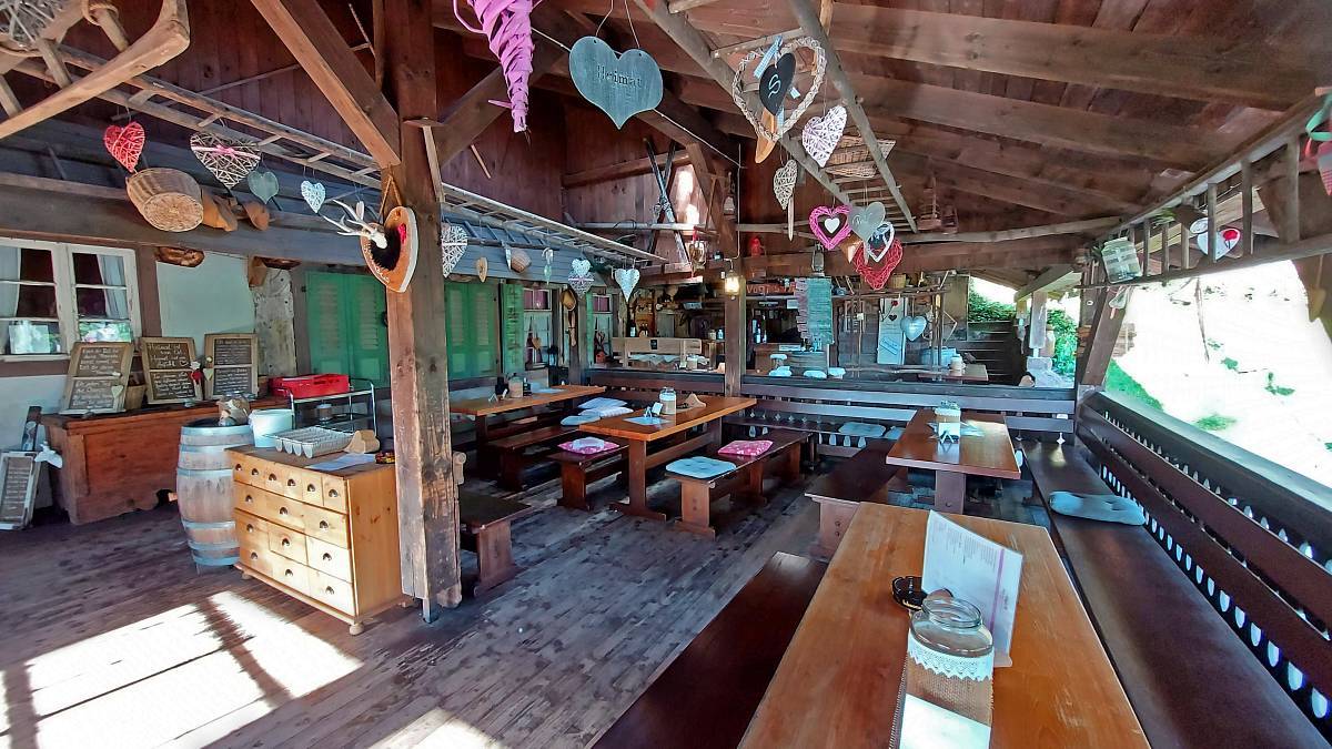 Im Außenbereich wurde eine große Terrasse angebaut, so dass in der warmen Jahreszeit die Gäste ihre Zeit in der Gartenwirtschaft (die bei unserem Besuch stylisch modern, fast kitschig dekoriert war) verbringen können. Wenn der Trubel dort zu groß wird, kann man sich in die nahegelegene Hofkapelle zurückziehen und die Stille genießen.